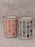 カラーには朱と紺の二種類があり、表面の模様はプリントではなく釉薬が使われている本格仕様。どの動物面を見ても一つとして同じ顔の無い、だいきょ屋の魅力満載の湯のみでほっと一息を楽しんでくださいませ。
