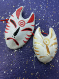 最初からドールが着けるために作られている狐面です。人間が顔に着けるための狐面ではありませんが、髪飾りとしてなど装着することは可能です。この狐面は赤を基調とした絵付けと、金を基調とした絵付けの2種類があります。さらにサイズが大・中・小と別れています。